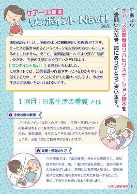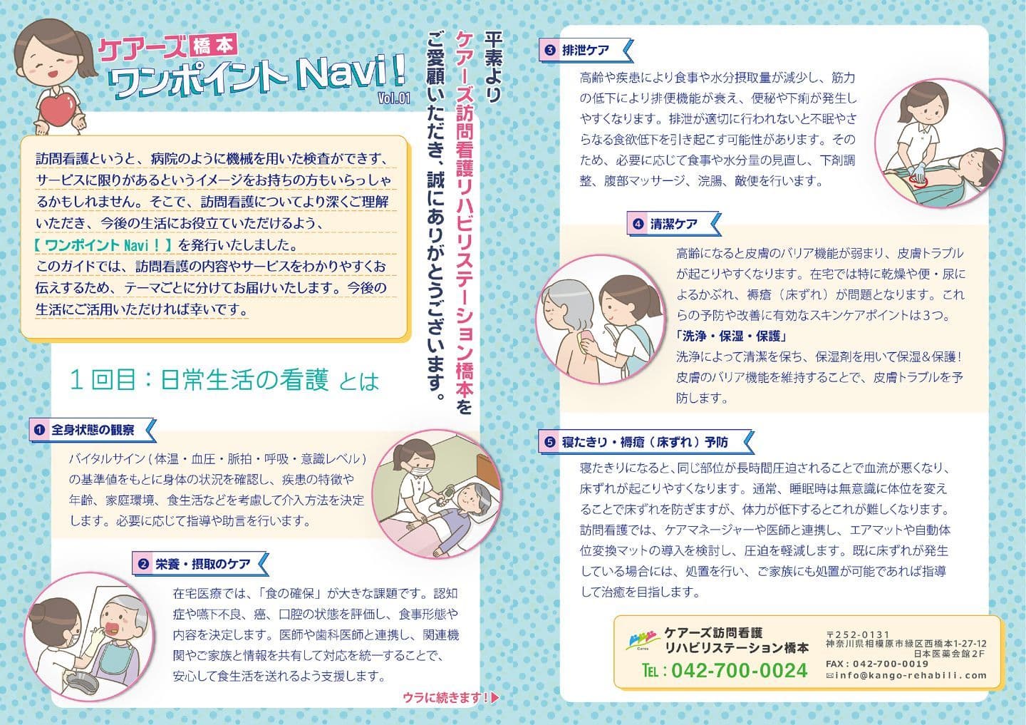 どのような時でもご利用者様とご家族様の立場に立ち、安心で安定した質の高い看護を提供し、地域社会において訪問看護の必要性を日々の活動を通じて伝えていきます。
