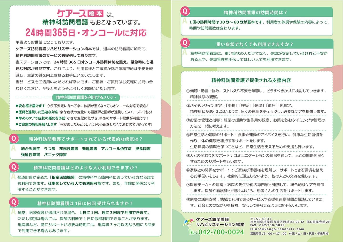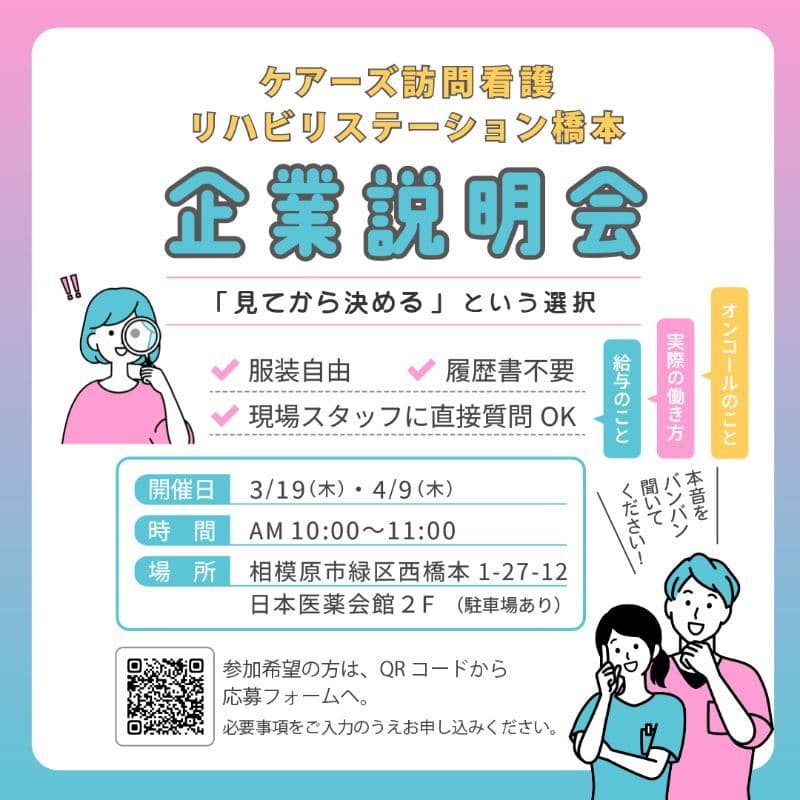 ケアーズ訪問看護リハビリステーション橋本は、神奈川県相模原市緑区西橋本にある24時間の訪問看護ステーションです。